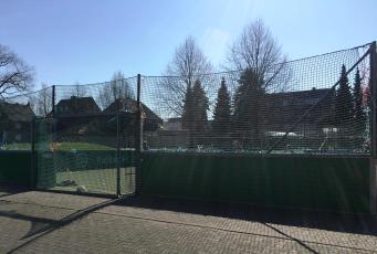 Aber es gibt auch Schönes zu berichten: unsere Kinder aus der Notbetreuung und Frau Klos verdienen ein großes DANKESCHÖN, denn sie haben in mühevoller Kleinarbeit und mit viel Motivation das Netz unserer Mini-Arena geflickt.