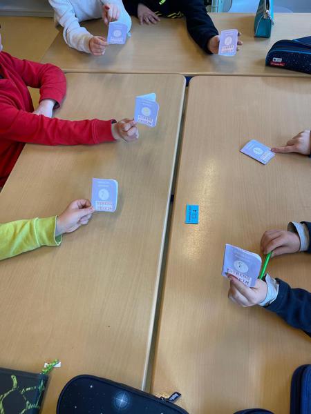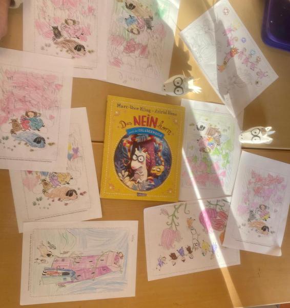 Zum Welttag des Buches am 23. April 2025 nahmen die Mäuse und Elefanten an der Aktion "Ich schenk dir eine Geschichte" teil. Dazu machten sie sich nach den Osterferien auf den Weg in die Buchhandlung Schauenburg am Ferdinand-Schmetz-Platz, um ihre Buch-Gutscheine einzulösen. Bevor jedes Kind sein eigenes Exemplar von "Cool wie Bolle" bekam - herzlichen Dank an die Buchhandlung Schauenburg - wurden Sie nicht nur durch die Buchhandlung geführt, sondern durften dort in kleinen Gruppen die "Schnitzeljagd" zur Aktion machen. Als Belohnung gab es noch ein Buch für die Klassenbücherei.
