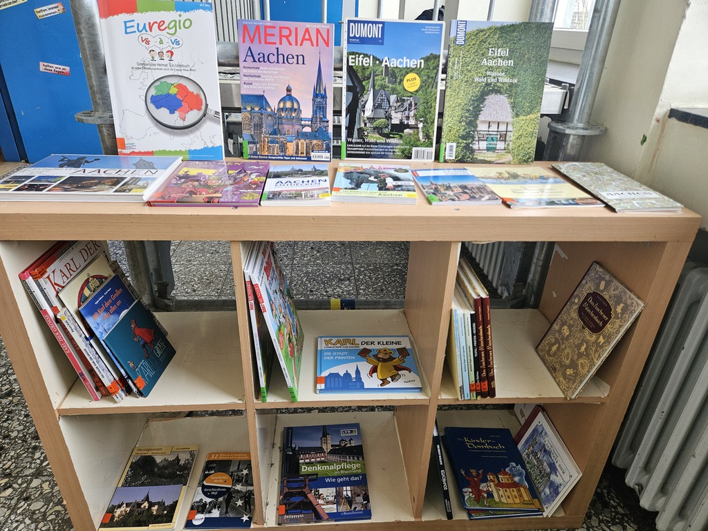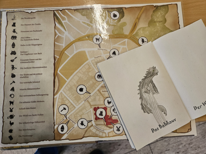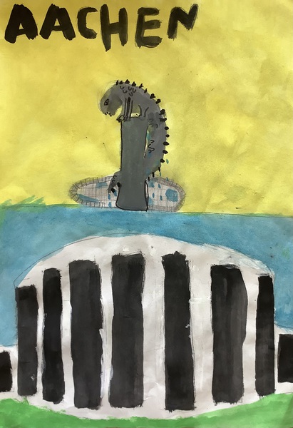 Im Sach- und Kunstunterricht haben sich die Mäuse und Elefanten ausführlich mit dem Thema "Aachen" beschäftigt. Neben einem Arbeitheft reisten sie auch mit den "Zeitgeistern" durch den Aachener Dom und hörten so manche Aachener Sage. Im Virtuellen Klassenzimmer gab es ebenfalls Interessantes zu sehen. Außerdem hatte die Stadtbüchrei Herzogenrath eine tolle Bücherkiste zusammengestellt. Am 9. April konnten die Kinder ihr Wissen vor Ort bei einer Stadtrallye zeigen und erweitern. Im Kunstunterricht entstanden tolle Zeichnungen, Bilder und Scherenschnitte zu Aachener Sehenswürdigkeiten.