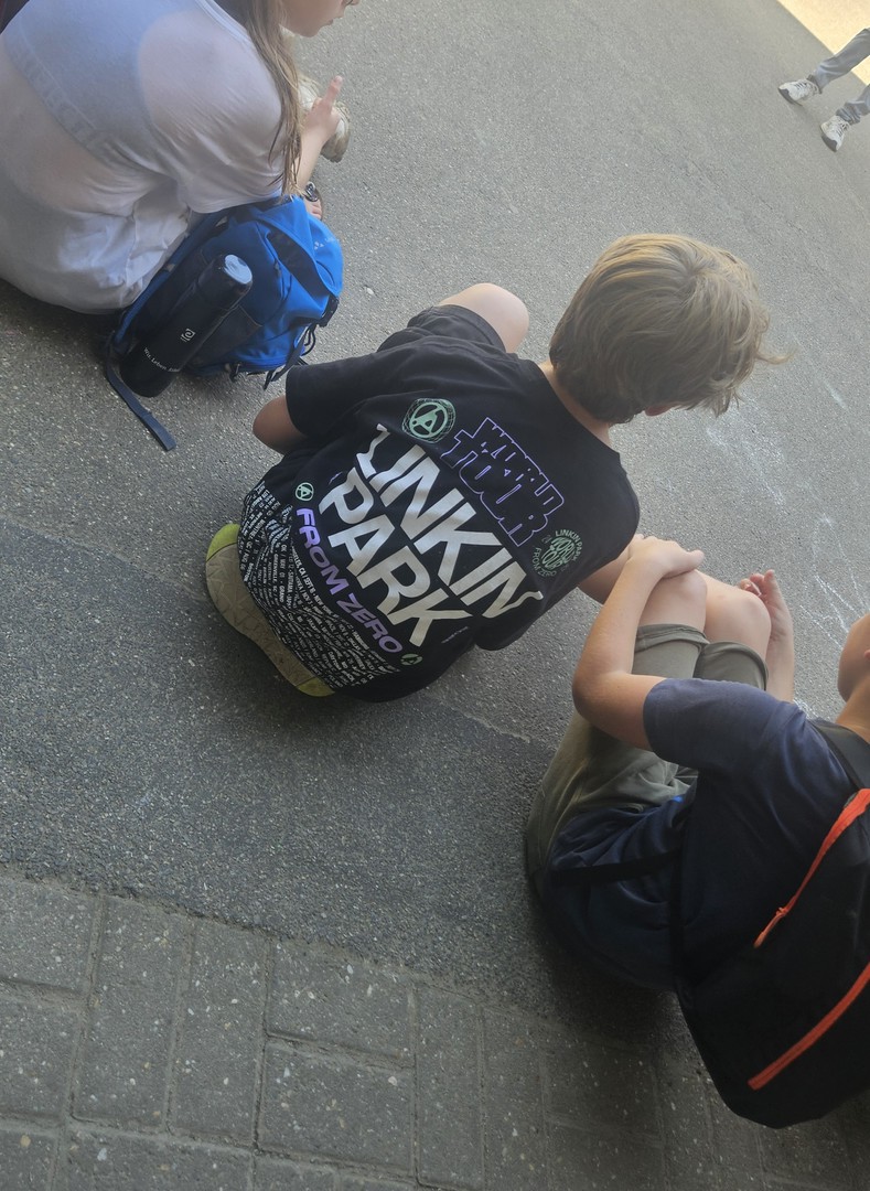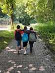 Nach einer tollen, von den Eltern organisierten Abschlussfeier am 28. Juni auf dem Gelände der Grube Adolf - ein herzliches Dankeschön an das Organisationsteam für den schönen Nachmittag - nahmen die Mäuse und Elefanten am 11. Juli endgültig Abschied von der Grundschule. Morgens trafen sie sich in ihren Klassen. Es wurden noch fleißig Unterschriften auf den T-Shirts gesammelt und die letzten Dinge eingepackt. Um 8.45 Uhr begann die Hofpause mit Eis für alle. Danach machten sich die Viertklässler gemeinsam mit ihren Paten - den Füchsen, Pinguinen und Zebras - auf den Weg zum bereits geschmückten Platz "An der Waidmühl".