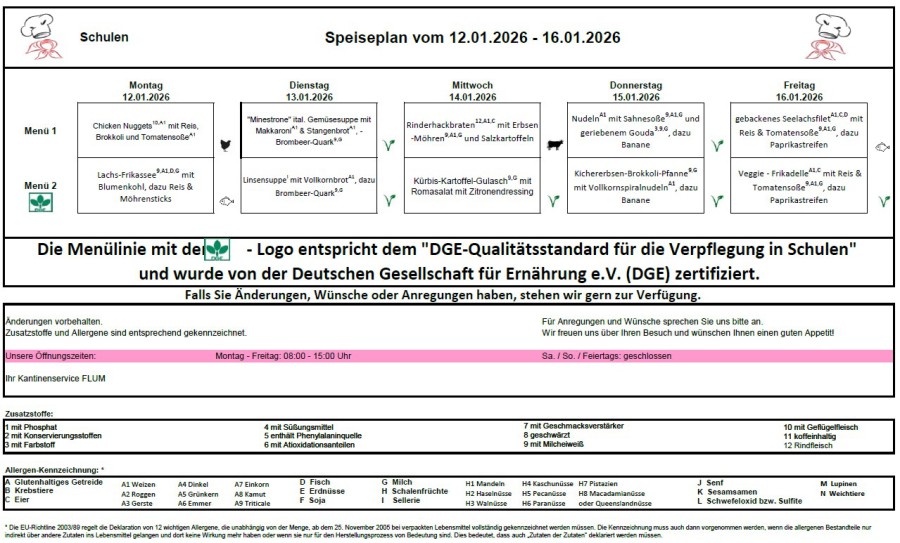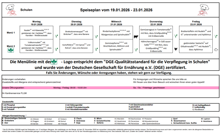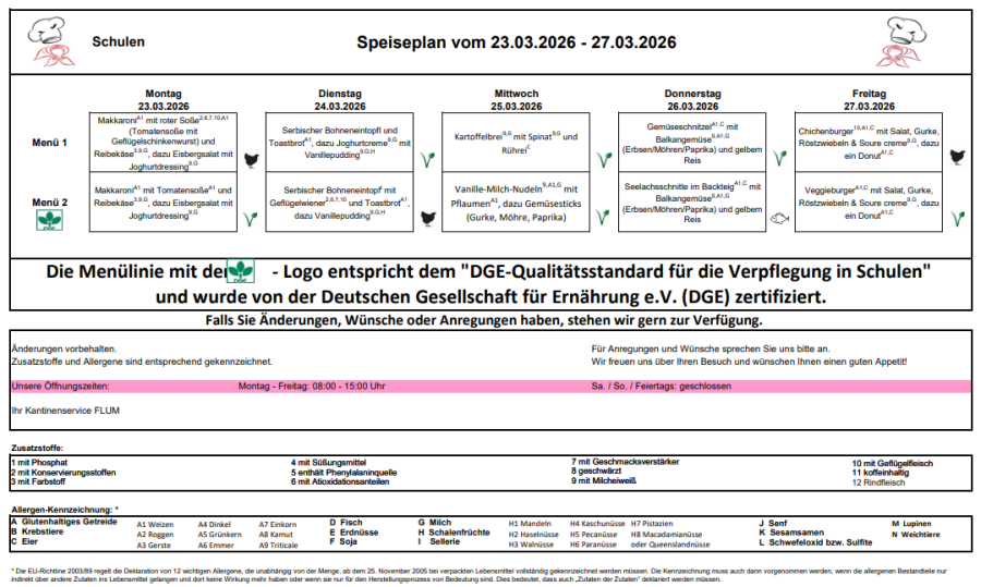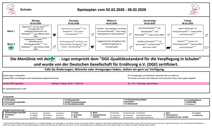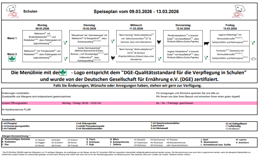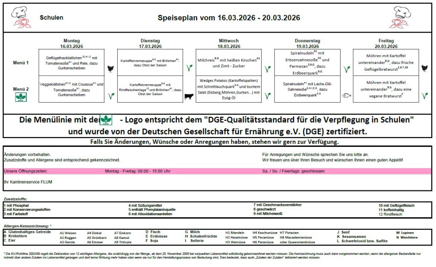 Wir weisen darauf hin, dass in der OGS grundsätzlich keine Speisen mit Schweinefleisch angeboten werden. Alle Gerichte sind entweder vegetarisch oder mit Rind- oder Geflügelfleisch.
