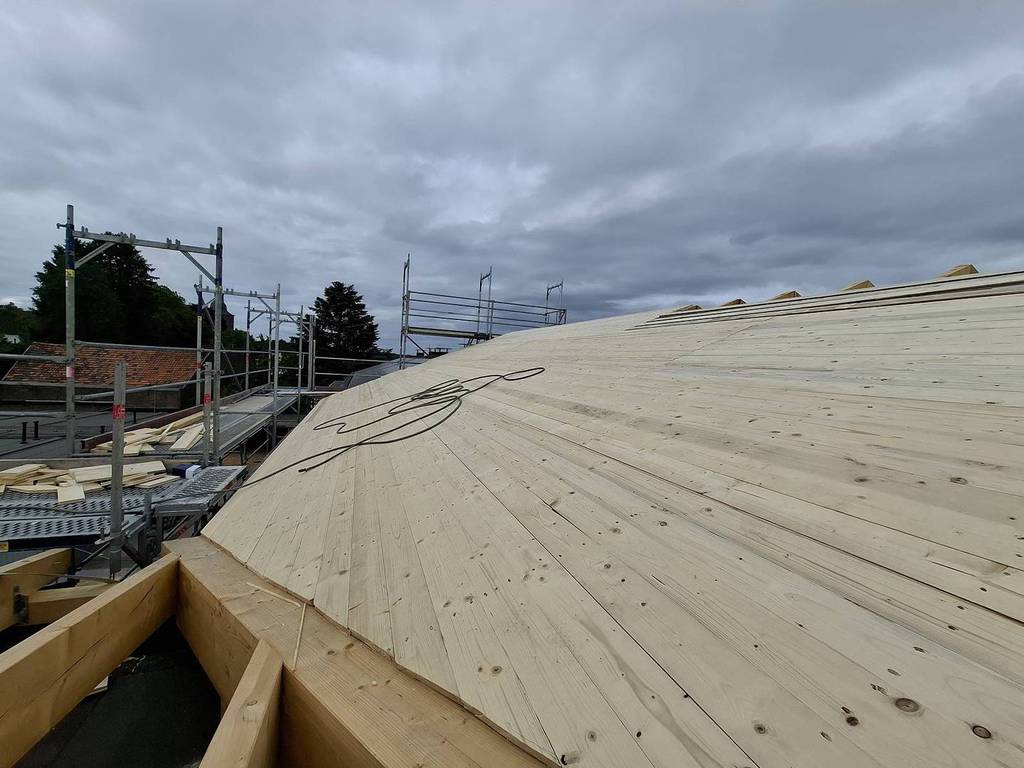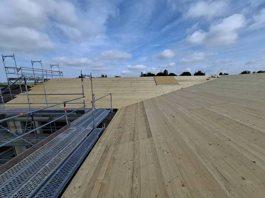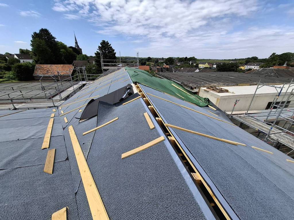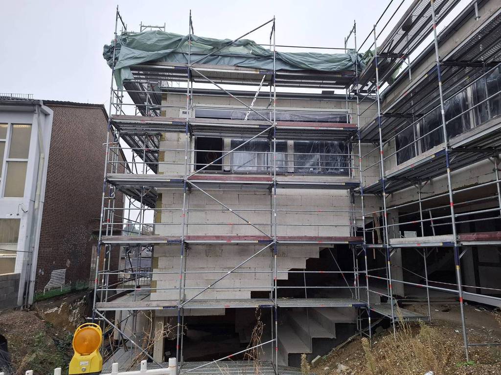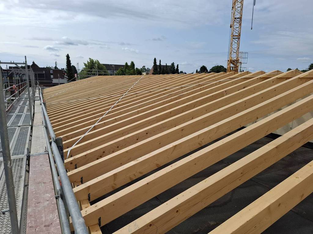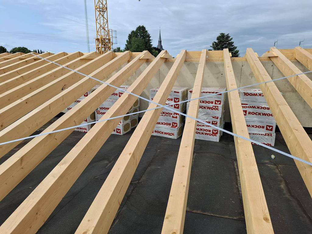 15 Monate nach dem ersten Spatenstich im Februar 2024 wurde Richtfest gefeiert. Wieder waren neben Bürgermeister Dr. Benjamin Fadavian viele Gäste aus Verwaltungsvorstand, Verwaltung, Politik sowie dem ausführenden Architekturbüro, der Baufirma, der Zimmerei und der Schulkonferenz gekommen. Nach dem offiziellen Teil mit Reden vom Bürgermeister, dem Technischen Beigeordneten Franz-Josef Türck-Hövener, der Beigeordneten für Soziales, Bildung und Familie Renate Wallraff und der Schulleiterin Anika Ehrt war es so weit: in luftiger Höhe wurde der Richtspruch durch den Zimmermann gesprochen. Danach überreichte der Bürgermeister Frau Ehrt noch die Urkunde, die im nächsten Jahr schon einen Platz im neuen Gebäude erhalten soll. Für die musikalische Gestaltung des Festes sorgten die Kinder unseres Schulchors unter Leitung von Gaby Bayer-Ortmanns. Zur Feier des Tages gab es in der neuen "Mensa" Getränke und Häppchen. Auch für alle Schulkinder gab es anlässlich des Richtfestes eine leckere Überraschung: So läuteten wir das folgende lange Wochenende mit Eis für alle ein!