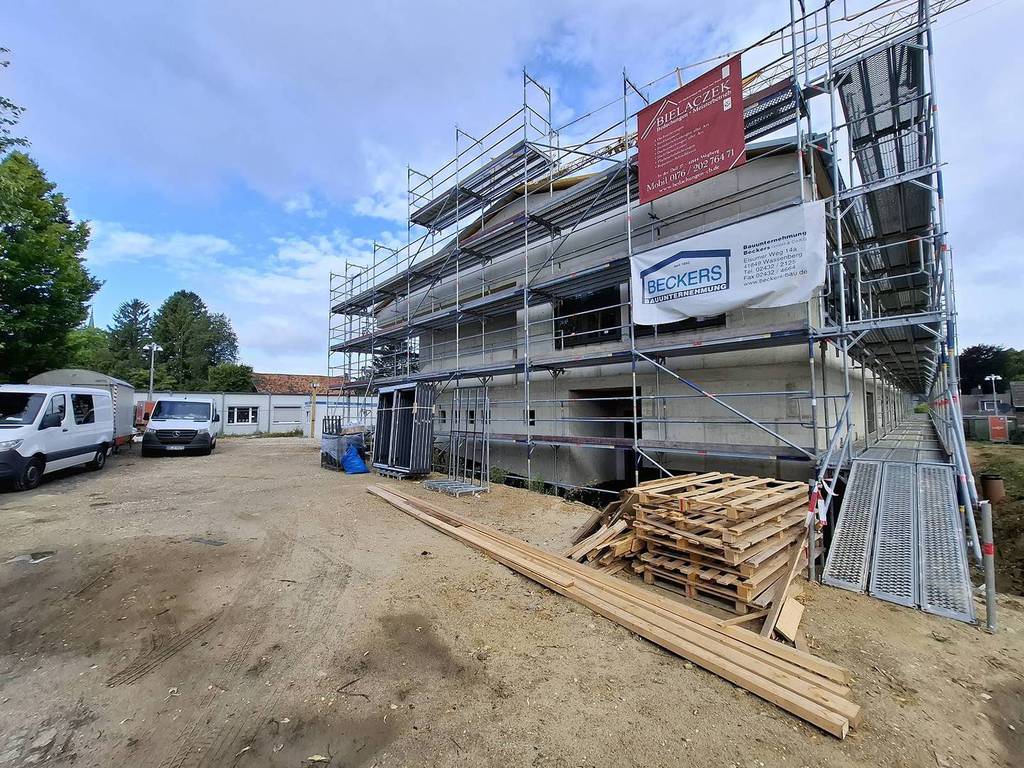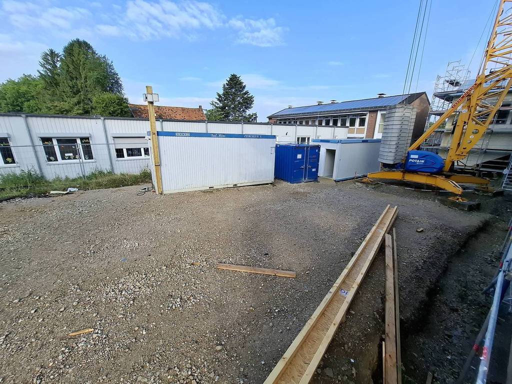 Seit Sommer 2021 wird auf dem oberen Schulhof gebaut. Zuerst ist eine Containeranlage als provisorische zusätzliche Raumlösung entstanden. Ab Herbst 2023 fanden weitere vorbereitende Arbeiten für die Baumaßnahmen auf dem oberen Schulhof statt. Im Februar 2024 wurde dort die Baustelle eingerichtet. Die Abriss- und Erdarbeiten begannen. Der erste Spatenstich war am 28. Februar 2024. Ab jetzt musste fleißig gegraben werden. Im Herbst 2024 lässt sich das Ausmaß des neuen Gebäudes schon erahnen. Anfang 2025 nähern sich die Rohbauarbeiten dem Ende. Am 22. Mai 2025 wird Richtfest gefeiert. Jetzt hoffen wir, dass wir im Sommer 2026 ins neue Gebäude einziehen können!